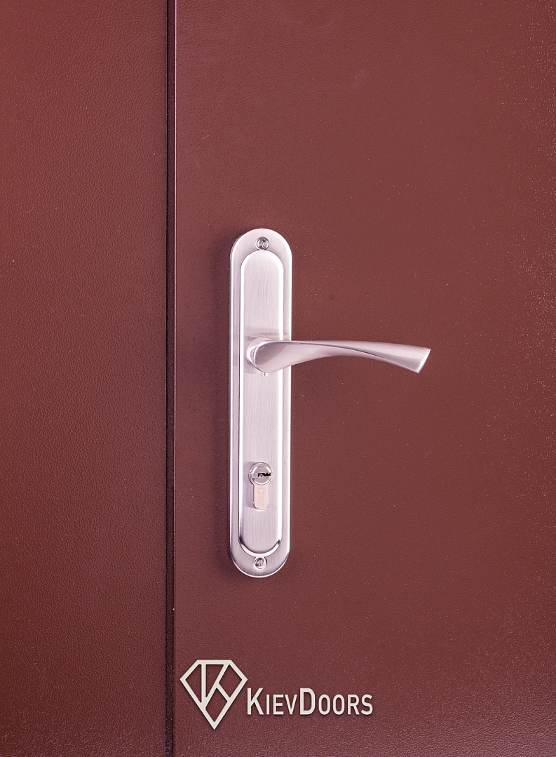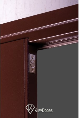 Короб: гнутый профиль 60 мм, один контур уплотнения, толщина короба 1,5 мм, снаружи лист металла: 1,5 мм, (покраска порошковая шагрень 8017), внутри панель ДСП 16 мм; ручка на планке, один нижний замок: цилиндровый КЕДР, цилиндр с поворотником, наличник металлический, Наполнитель пенопласт.