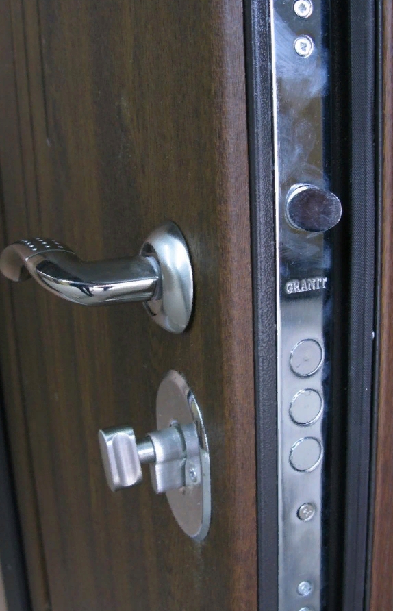 Фурнитура * 3 внешние петли, ручка на розетке, утоплены броненакладки, евроущильнювач, порог из нерж. стали