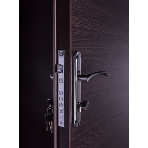 Короб: гнутый профиль 60 мм, один контур уплотнения, толщина короба 1,5 мм, снаружи лист металла: 1,5 мм, (покраска порошковая шагрень 8017), внутри панель ДСП 16 мм; ручка на планке, один нижний замок: цилиндровый КЕДР, цилиндр с поворотником, наличник металлический, Наполнитель пенопласт. Высота - 1900 мм !!!